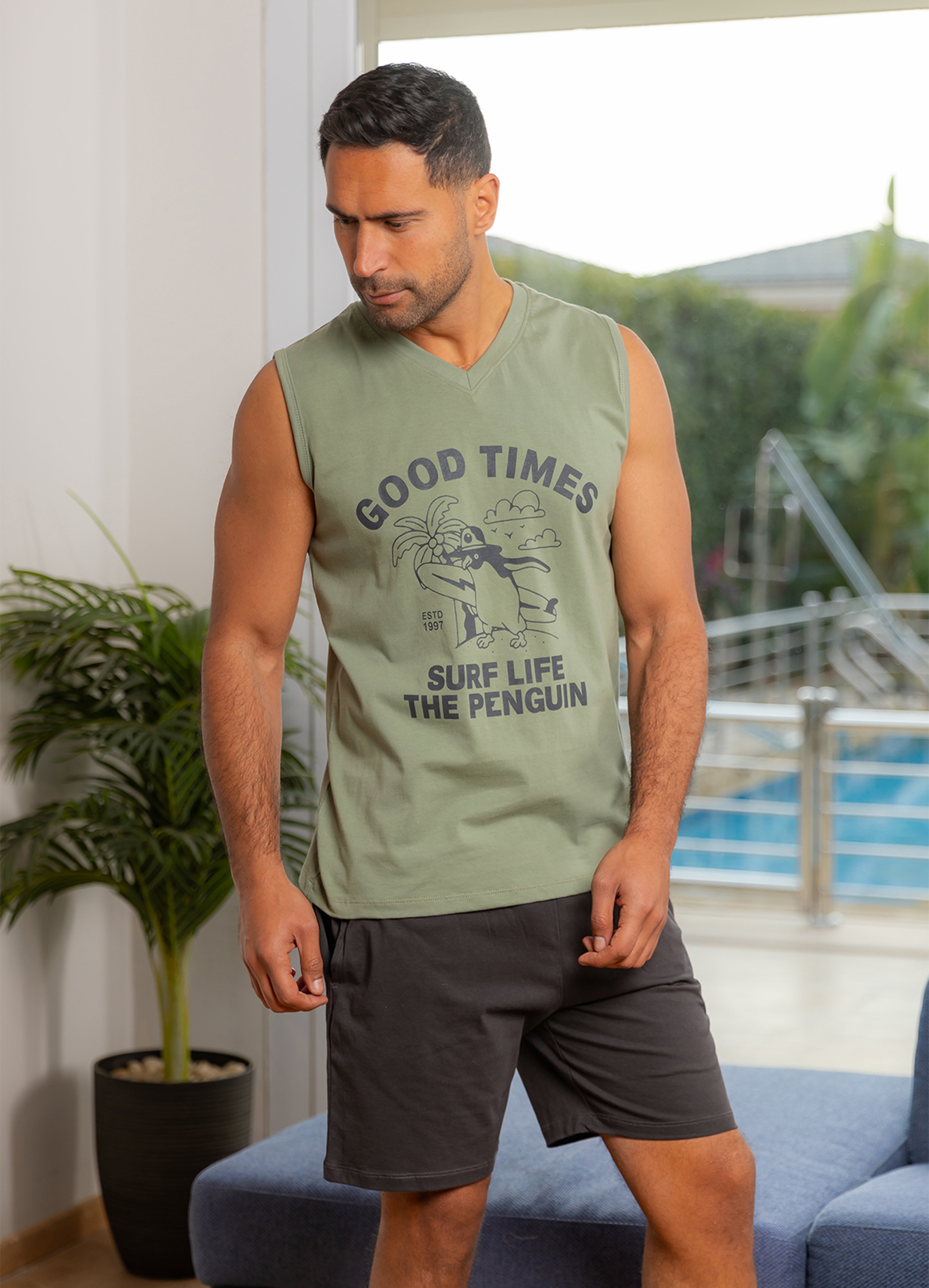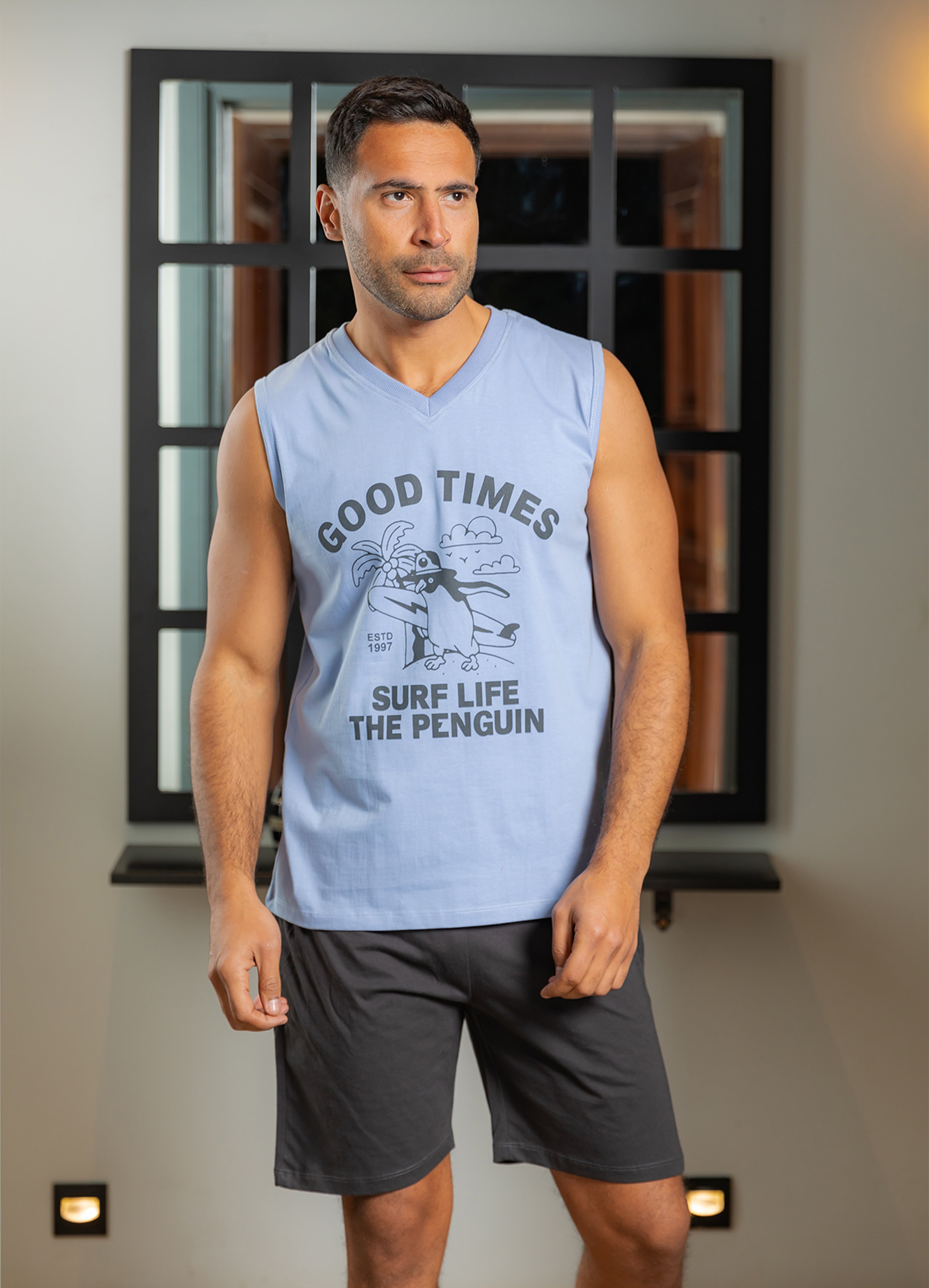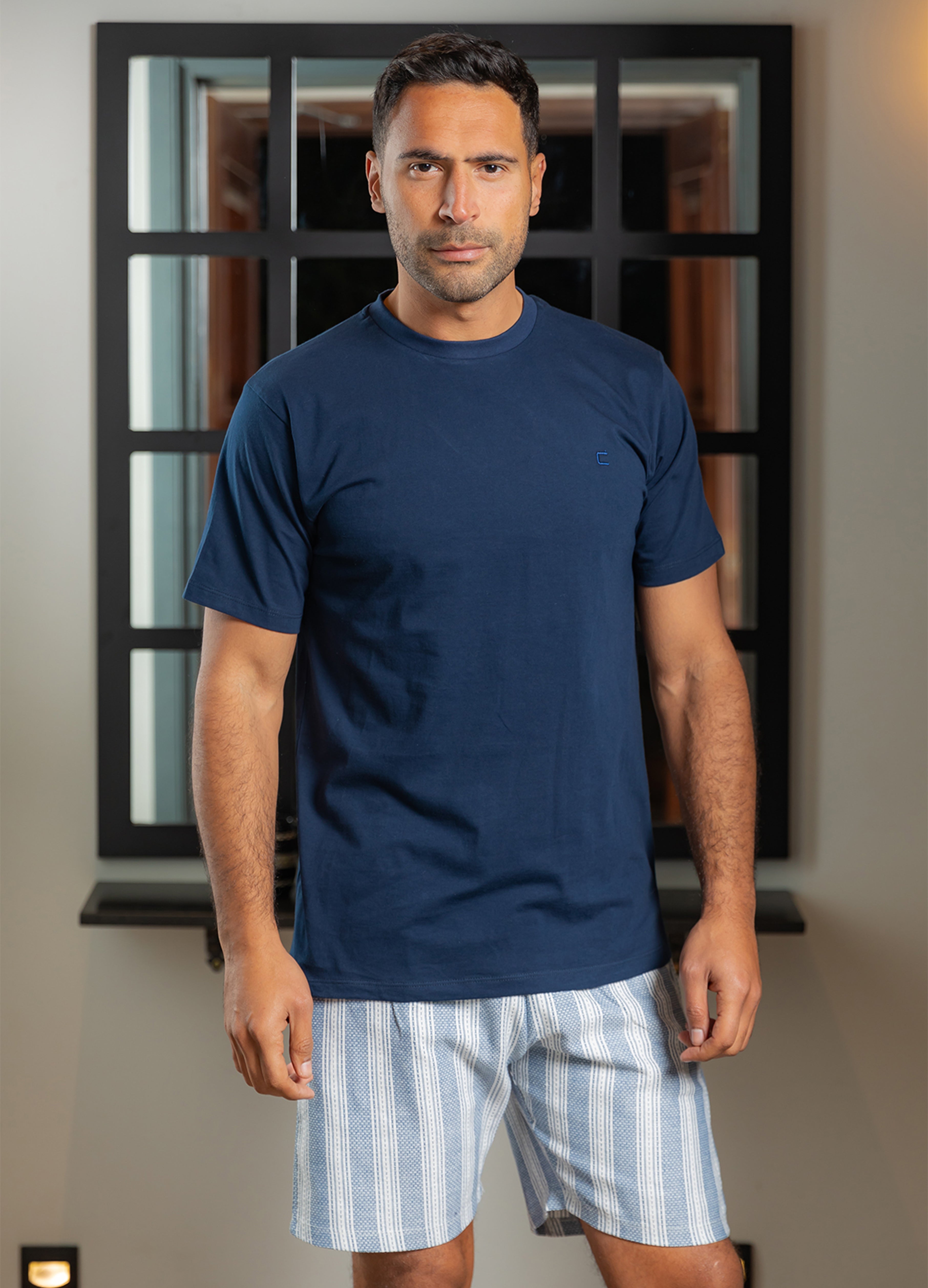 بيجامة 1/2 كم مفتوحة بنطلون نسيج