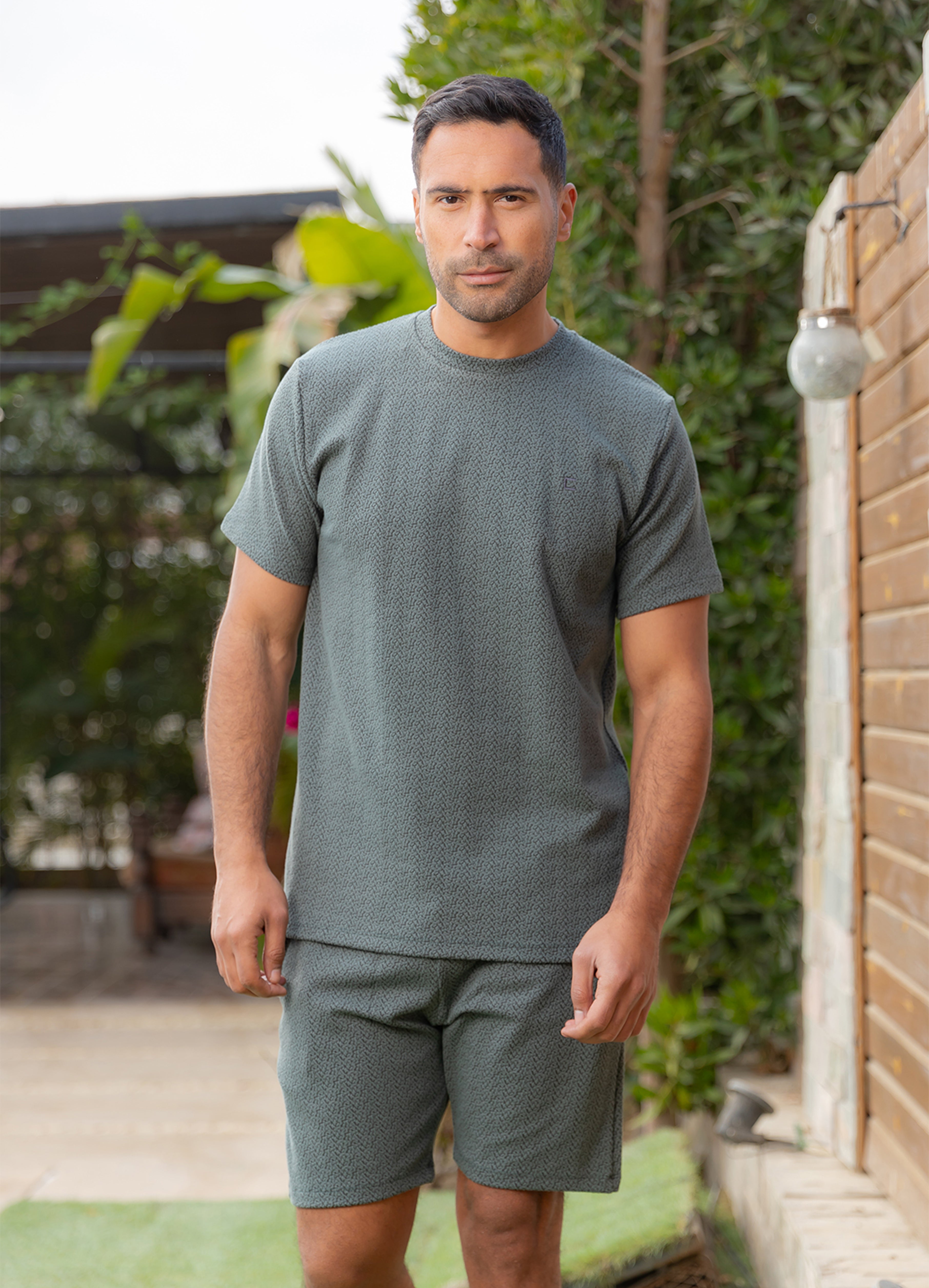 طقم 1/2 كم كابيشوة مضلعة شورت