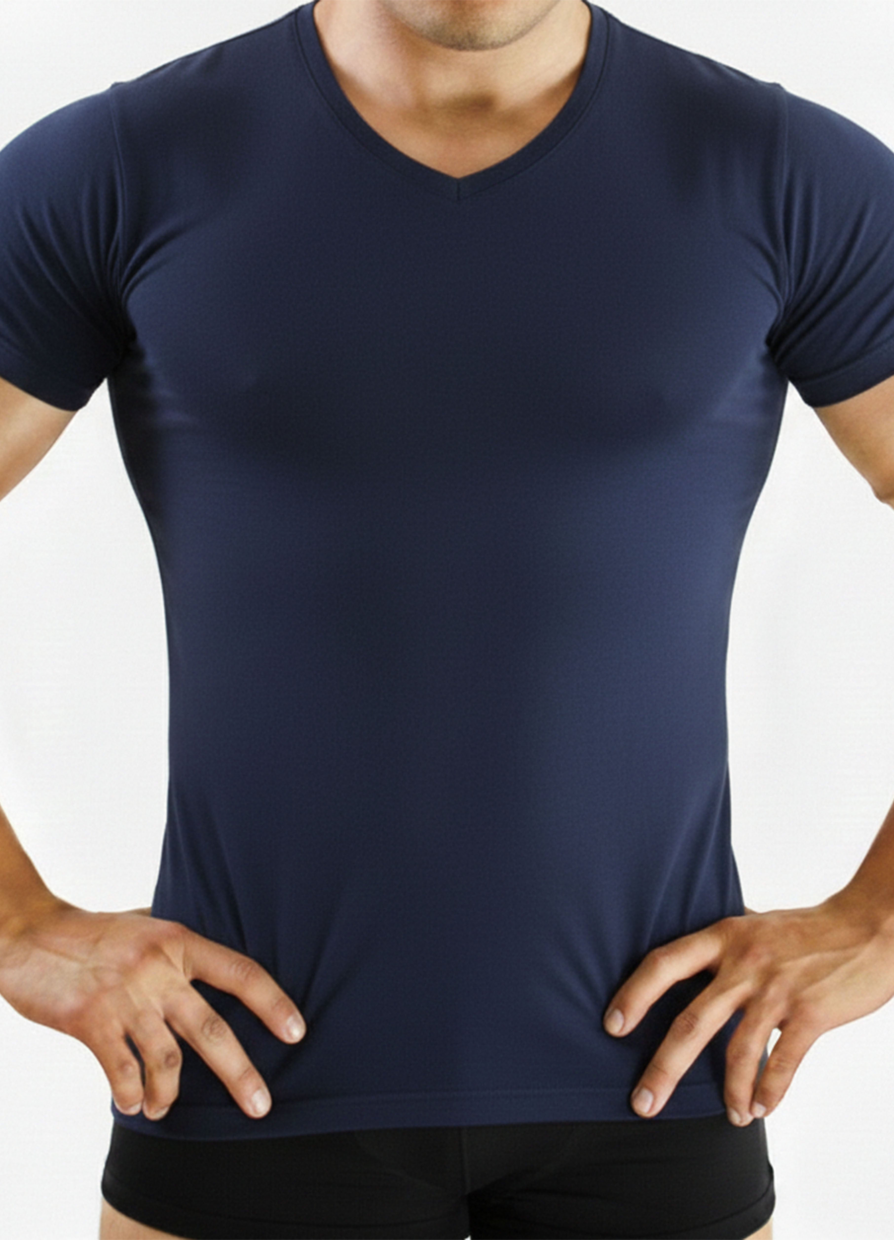 اندر شيرت فانلة نص كم V قطن ليكرا تدفئة الوان