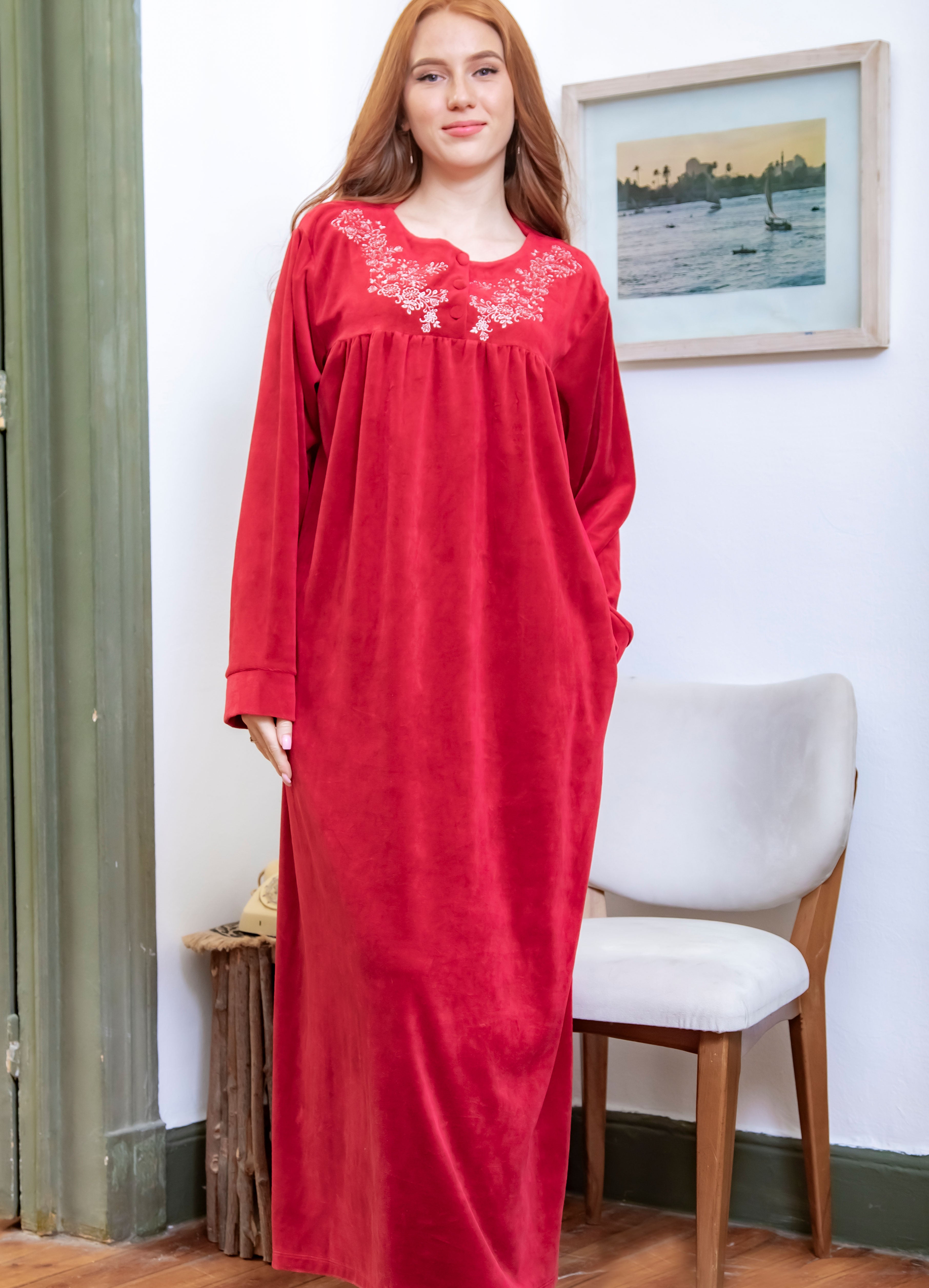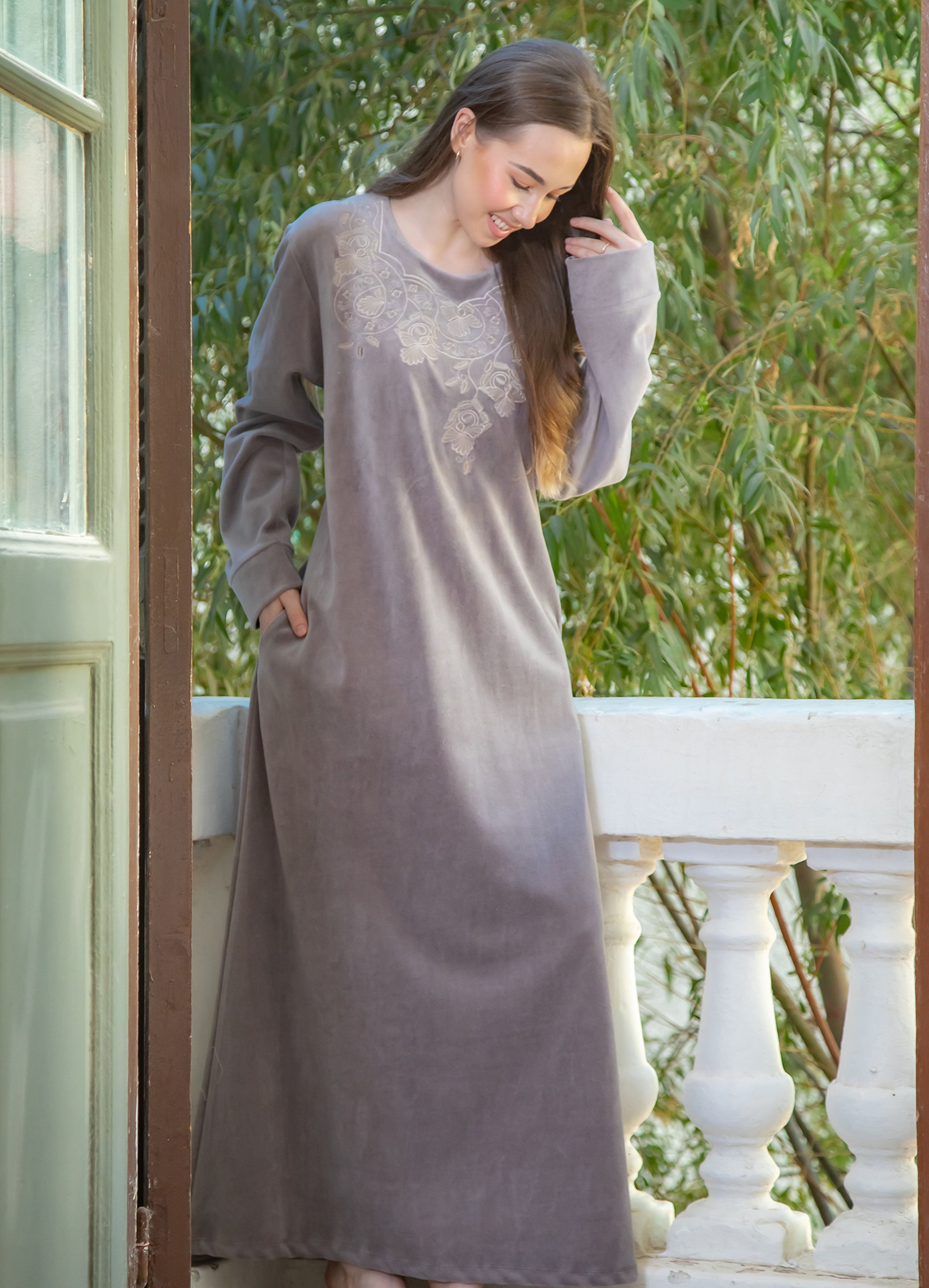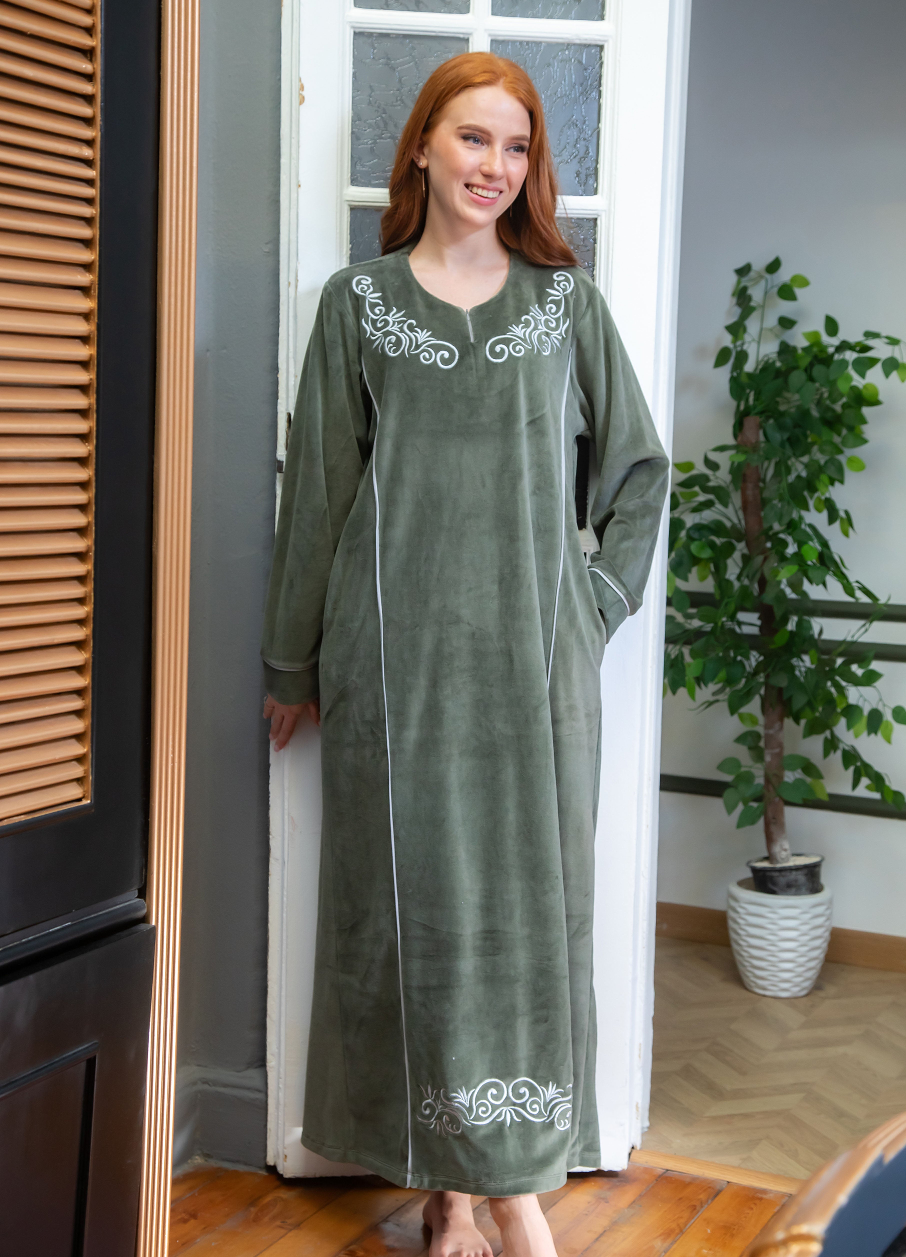 جلباب قطيفة مطرز بسوستة
