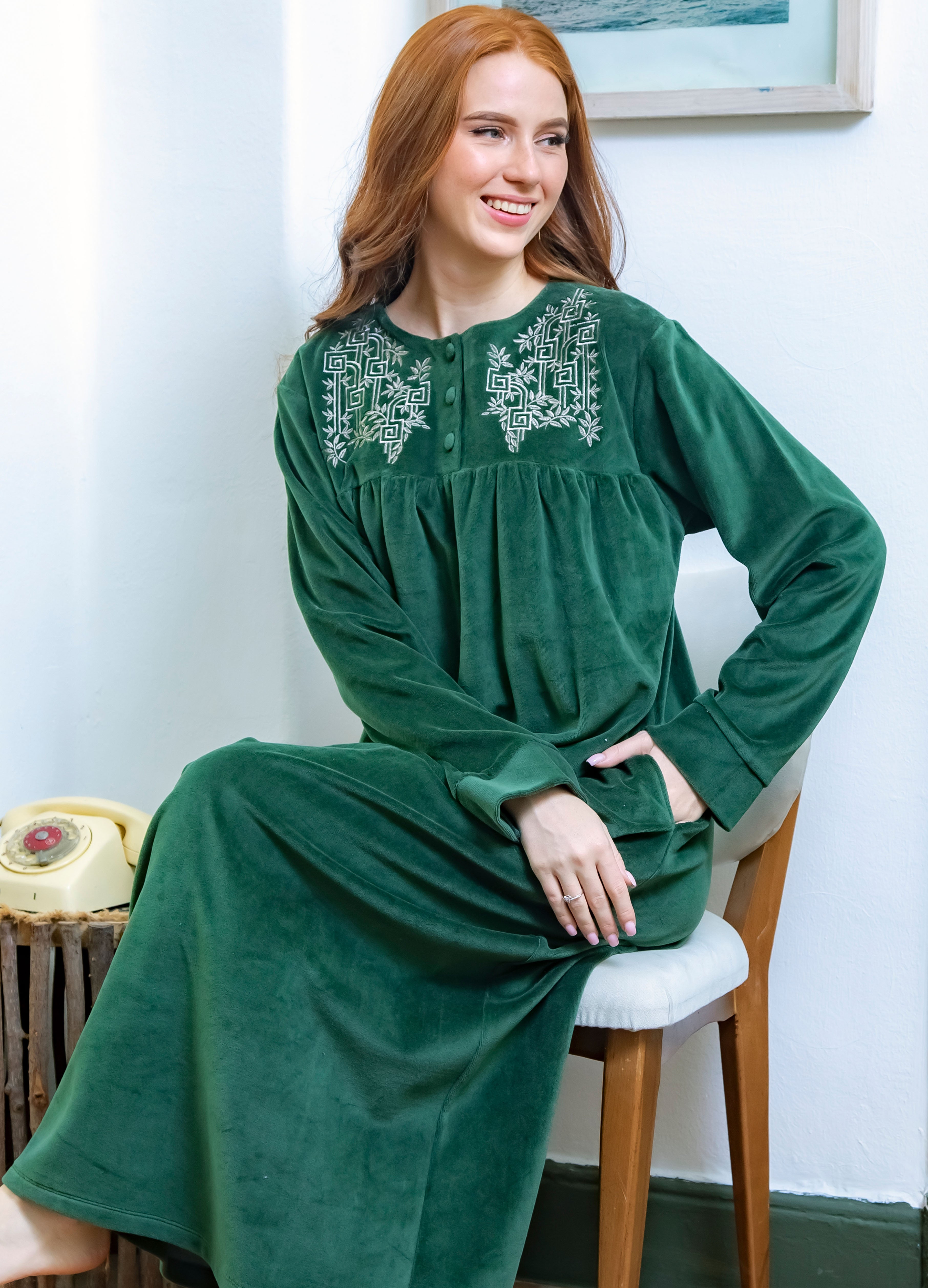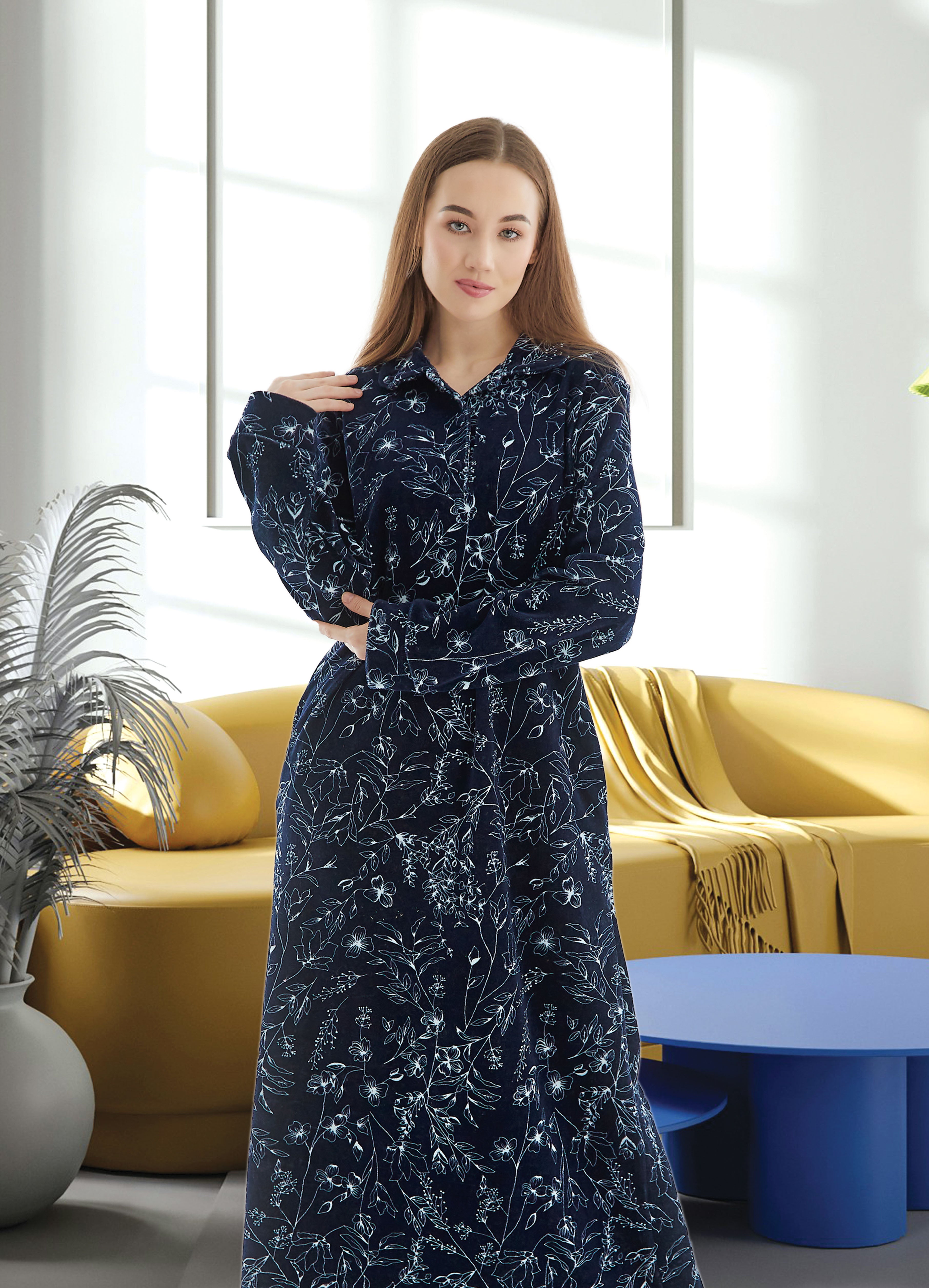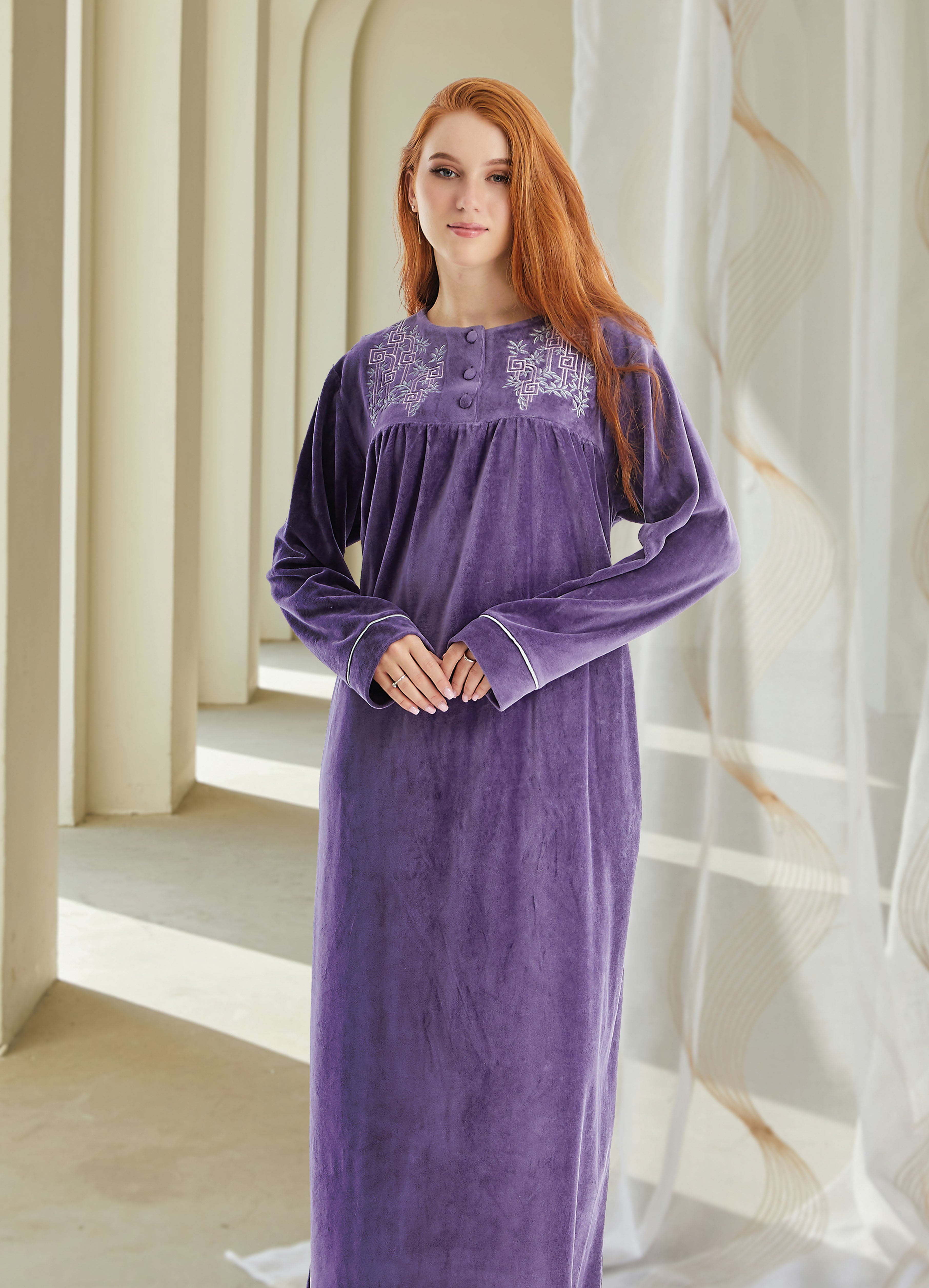 جلباب قطيفة مطرز بسوستة
