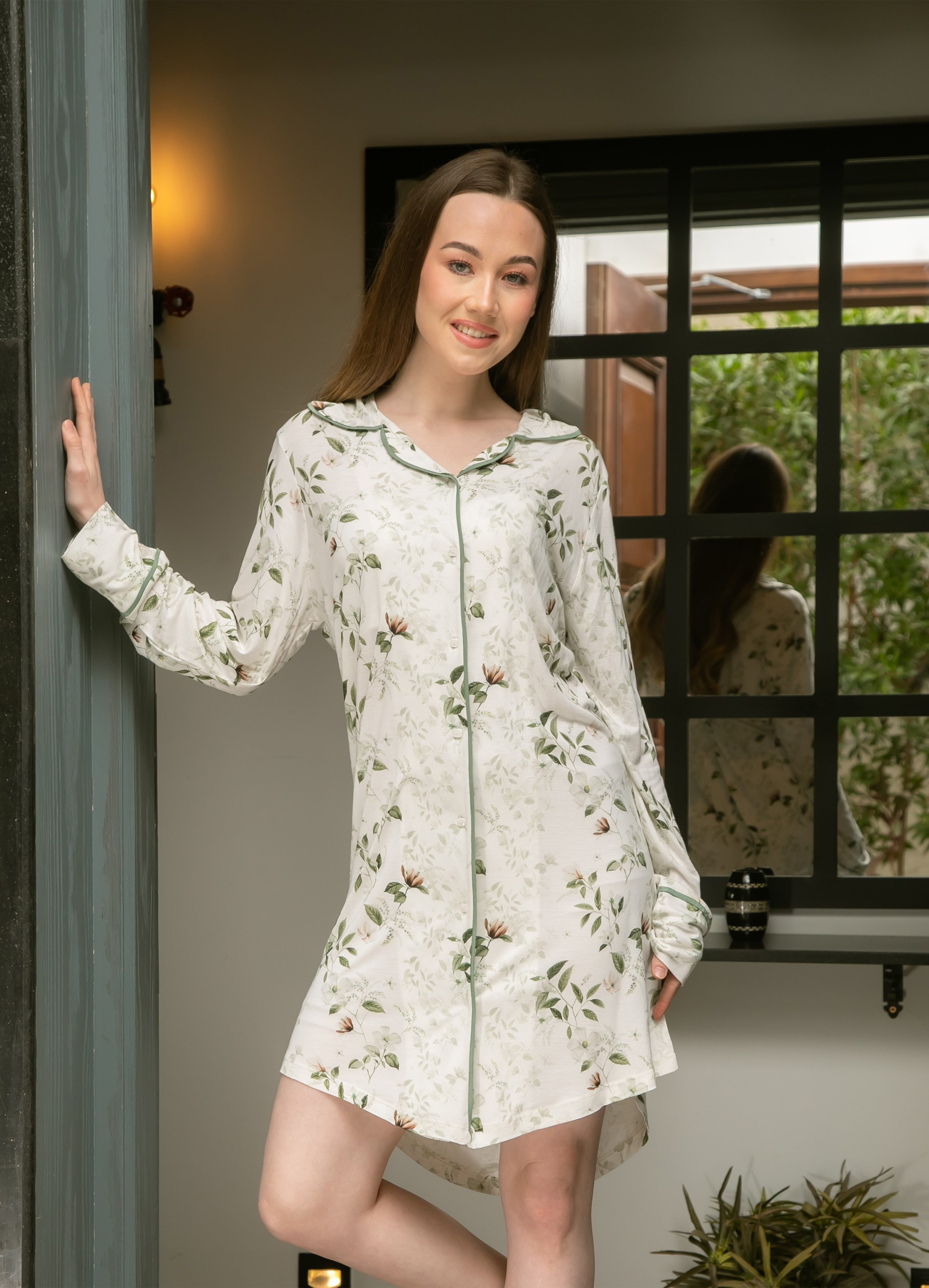 نايت شيرت مفتوح القلم الرفيع نسيج