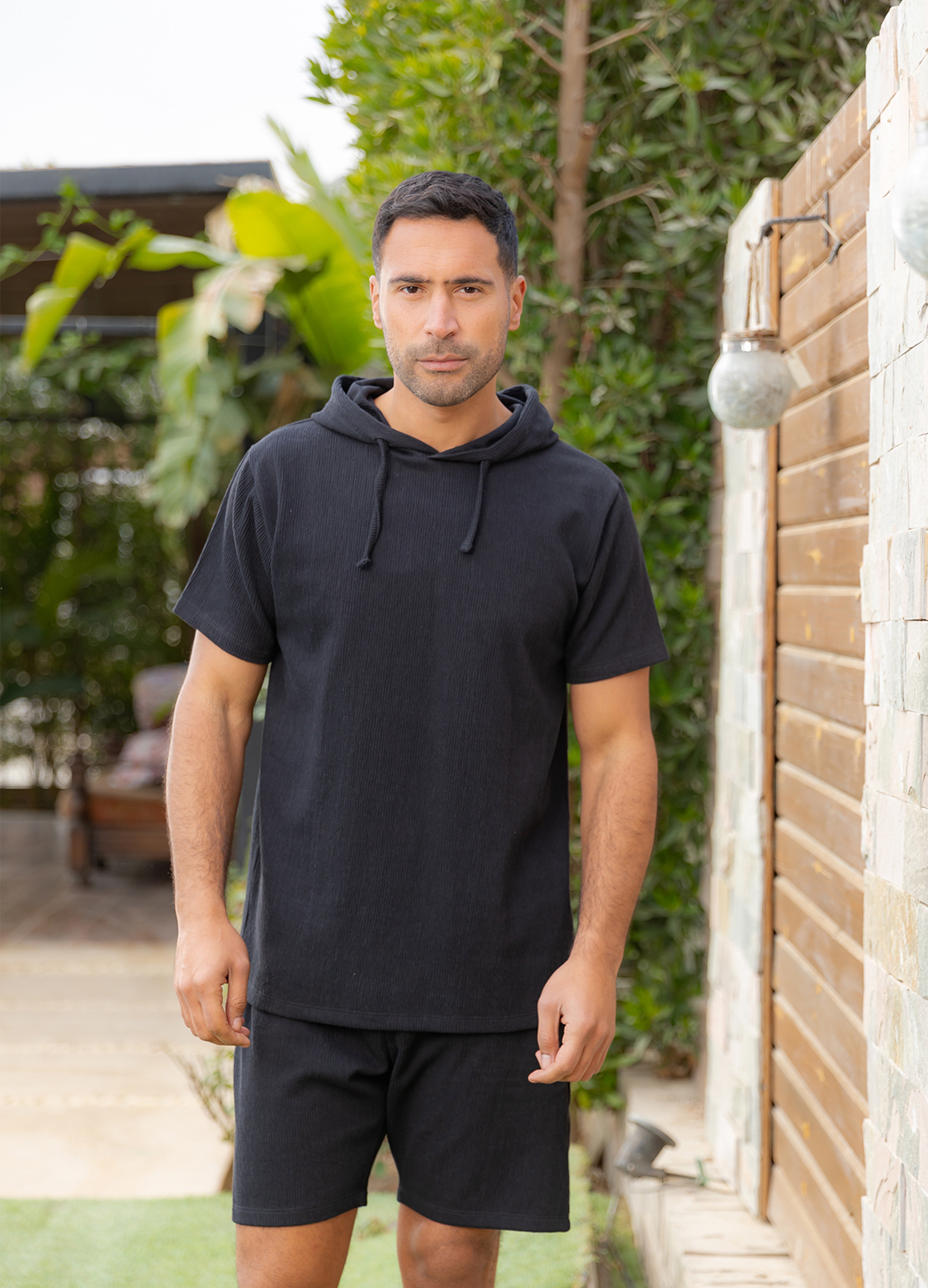 Textured Cotton Hooded Set